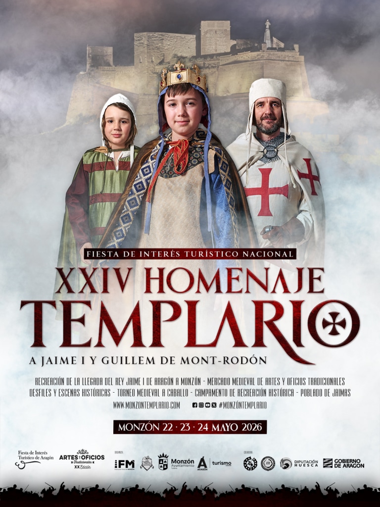 El XXIV Homenaje Templario ya tiene cartel, que el Ayuntamiento de Monzón ha presentado en el castillo de Monzón, donde fue educado el niño rey Jaime I. Un cartel del que ya forman parte las imágenes de los nuevos Jaime I, Ramón de Berenguer y Mont-rodón.